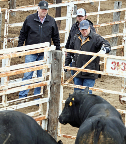 Potential buyers attending the Mike Sitz and Joel Johnston Family’s 53rd Annual Bull Sale on Monday,